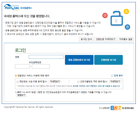 위에서 보이는 "국세청 연말정산 간소화 서비스 - 홈택스"를 클릭합니다.